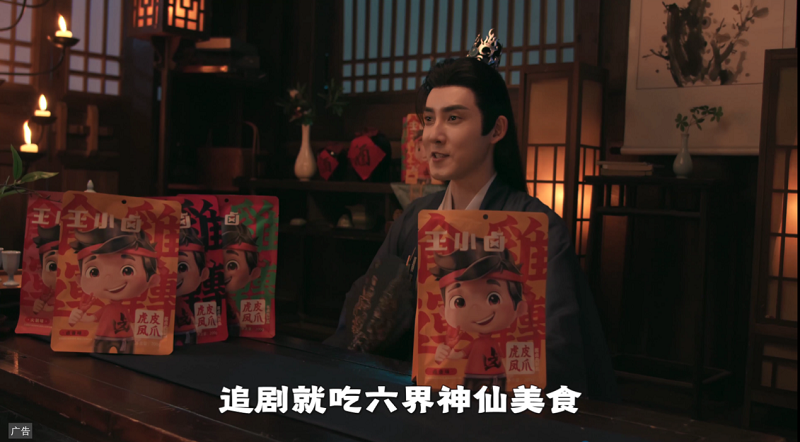 从片中广告到3D破屏广告,再到《沉香如屑》的拍摄类内生广告,王小卤在大剧营销上的花式玩法也展示了其在娱乐营销上的又一升级。通过mini剧场形式传递品牌亮点,并以“追剧就吃六界神仙美食王小卤虎皮凤爪”的广告语和魔性鬼畜“太太太太太好吃啦”强化产品与追剧场景的绑定,多形式、强互动打造“凡有高能处,必有王小卤”的沉浸式合作。