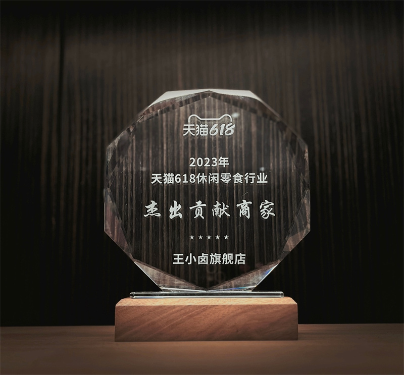 近日,虎皮凤爪领导品牌王小卤凭借618大促期间在天猫平台的抢眼销售战绩,荣获由天猫颁发的2023天猫618休闲零食行业「杰出贡献商家」奖。