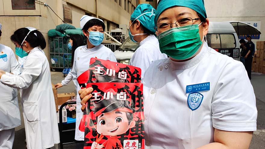 此次王小卤作为物资捐赠方之一,面向中日友好医院、北京大学人民医院护士群体捐赠总价值超21万产品,其中包括2022袋虎皮凤爪、5120袋川香巴沙鱼皮、5120袋火锅素毛肚,以优质的产品向护士群体传达“2022·5120”“2022我要爱您”的温暖含义,在致敬守护人民健康的白衣天使的同时,为她们送去真诚的节日问候。