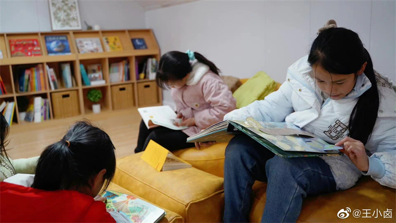 为了丰富孩子们的课余时间和文化生活,给孩子们的未来开启更多可能性,王小卤为村里的孩子们打造了一个专属的文化空间。该空间共两层,一层有供孩子们娱乐的开放空间、影音室和宝藏空间,小朋友可以在这里看电影、看纪录片、做科学小实验、玩益智游戏等等;二层是舒适的阅读空间,孩子们可以自由地选择想看的书,不仅有有趣的绘本、立体书、漫画等,帮助孩子们开拓眼界、了解外面世界的书籍;还有情商培养、兴趣启蒙、思维锻炼、趣味科普等帮助小朋友更好地认识自己、自我成长的书籍。